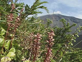 標高2,400mの富士宮口5合目から宝永第二・第三火口を経て小天狗塚へ、幕岩経由で森の中を歩き、標高1,400mの御殿場口新五合目へ下りるという変化に富んだコースです。夏の草花はまだこれからでしたが、宝永火口でベニバナイチヤクソウの見事な群生を見ることができました。この後、時期を少しずらして歩きました。