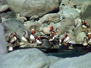 「狩野川河口の自然」)と行ってみました。オシドリは開けた河原の反対側に集まっていて、近づくと警戒して飛び立ってしまいます。ようやく遠くから少しだけ撮影することができました。