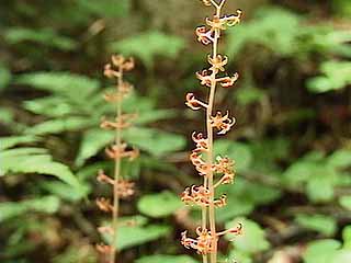 昨年の7月10日に小富士付近を散策した時、ヒメムヨウラン、イチヨウランなどの花は終わりかけていたので、今回は時期を少し早めました。私の個人的な希望だった予定がそのままFFP富士山NETの観察会となりました。時折霧がかかったり晴れ間が見えたりする中、小富士遊歩道から小富士一帯の森を散策しました。一帯にはヒメムヨウランが数多く見られ、また、昨年はついに見つけることができなかったカモメラン、一株しか見つけられなかったイチヨウランもそれぞれ数株の花を見ることができました。(参加者10名)