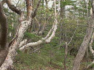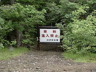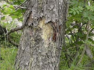 カラマツの幹のオフロード車による11年前の傷跡・下の画像は1991年に撮影したもの