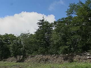 風倒木のウラジロモミ林跡に広葉樹が植えられた
