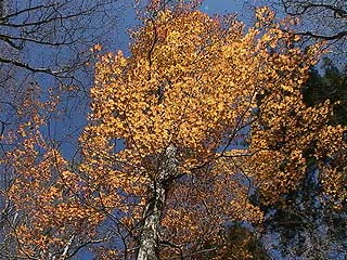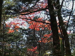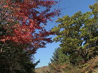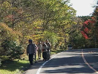 今年最後の観察会はここ数日の冷え込みで紅葉が盛りとなった標高1,400m〜1,700mの南東麓の森を散策しました。今回は好天に恵まれた上、この夏の観察会で偶然お会いした神奈川県の2名が参加するなど、楽しい観察会になりました。この森では1995年に熊に出会ったことがありましたので、今回は念のため鈴をつけて歩きましたが、間近で熊の鳴き声を聞き、あらためて熊の生息域であることを実感しました。(参加者9名)