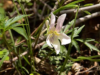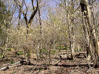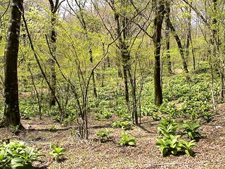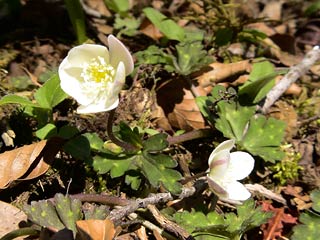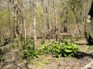 今年最初の観察会は西臼塚です。何度も散策している西臼塚ですが、観察会を西臼塚で4月に行うのは初めてでした。昨日から寒さが戻り、スカイラインの温度表示は3度。昨日から開通と聞いていた登山区間も積雪のため通行止めになっていました。それでも好天に恵まれ、風も穏やかでしたので、さわやかな散策ができました。前半、川崎から来られた方とご一緒になりました。安藤さんの案内で初めて散策した森の中で5本の巨木の計測を行いました。また、ユキザサは南麓では初めて確認しました。午後は、これも初めて、西臼塚遊歩道の西端にあたる案内図にある「野鳥小屋」まで行ってみたのですが、野鳥小屋は見つけられませんでした。遊歩道は大部分を風倒木のため伐採された人工林跡を通っていますが、富士山側ではブナが多く見られる自然林も通ります。伐採後の一部には鹿よけガードを巻いたヒノキが植林されていました。(参加者7名)