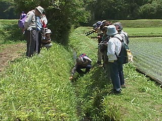 | かつては最も多様性に富み、豊かといわれた田園地域の生態系ですが、近年は、宅地化、農業の近代化により、里山(本来の意味の里山である雑木林)の消滅、川や手溝(田に水を引く小川)のコンクリート化などにより、多くの生きものたちが生息していた環境が失われました。かつてのそのような環境の名残がみられる御殿場市浄化センター周辺で富士山自然誌研究会の菅原先生(植物)と日本野鳥の会東富士支部の菅支部長の案内で観察会が行われました。特に珍しい植物が見られたわけではありませんでしたが、上空をトビが舞い、野鳥の囀りと懐かしい小川の水音の中で、先生の解説を聞きながら楽しい観察会のひとときを過ごしました。 |