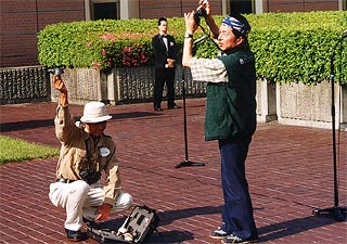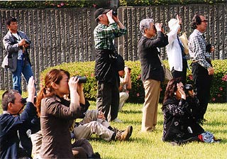 1934年(昭和9年)6月2日と3日、歌人の中西悟堂が設立した会の趣旨に賛同した柳田国男、北原白秋、金田一京助、そして先日亡くなられた当時学生の金田一春彦氏など、多くの文化人たちが参加して日本で最初の探鳥会が富士山で行われました。日本の自然保護運動の先駆けとなったその記念すべき探鳥会からちょうど70年目の6月2日、当時の参加者の親族の皆さん、俳優で日本野鳥の会会長の柳生博さん、湯川れい子さん、江戸屋小猫さんなど約30人が参加して探鳥会と記念碑の除幕式が行なわれました。翌3日は地元の子供たちや野鳥の会会員なども参加して、早朝から観察コースでの探鳥会や70年前の探鳥会の記念写真の場所を訪ねて記念写真の撮影などが行なわれました。