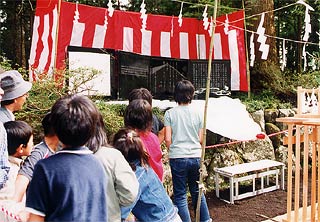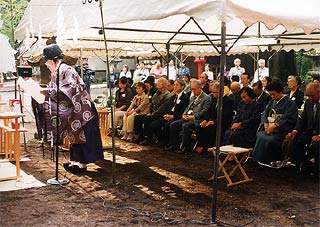 子供たちが除幕して神事が行われました