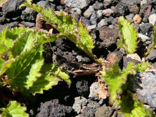 虫食いのオンタデにバッタが居た