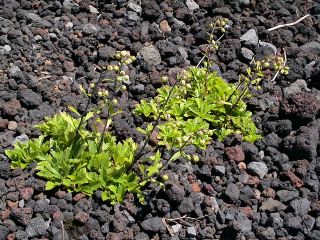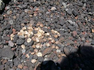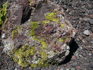 溶岩に付着した苔と地衣類
