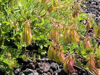 火口底に進出したカラマツ