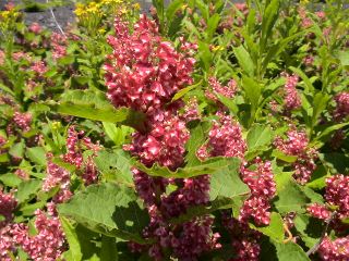 黄色いキオンの中でひときわ目立つ赤いイタドリ