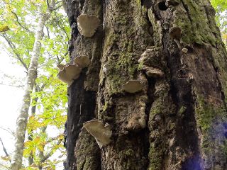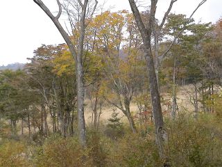 今回で2004年の観察会は最後です。この季節には何度も訪れている西臼塚ですが、今年は度重なる台風と猛暑だった夏の所為か、木の葉が痛んでいる上、紅葉も遅れて森の様子は例年とは違っていました。草花はヤマトリカブト、リンドウ、ヤマハッカ、ツルシロカネソウなどが僅かに見られただけでした。朝のうちは薄曇りで気温も低かったのですが、昼前には薄日が射し始め、暖かく穏やかな日和の中でのんびりと散策を楽しみました。(参加者4名)