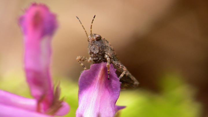 ムラサキケマンとバッタ