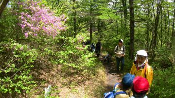 遊歩道脇はトウゴクミツバツツジが盛り